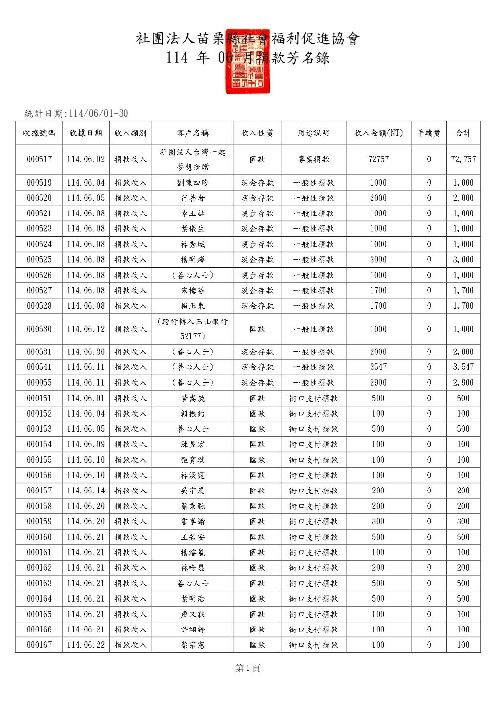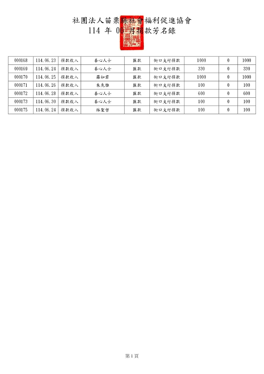 2025年6月 捐款芳名錄